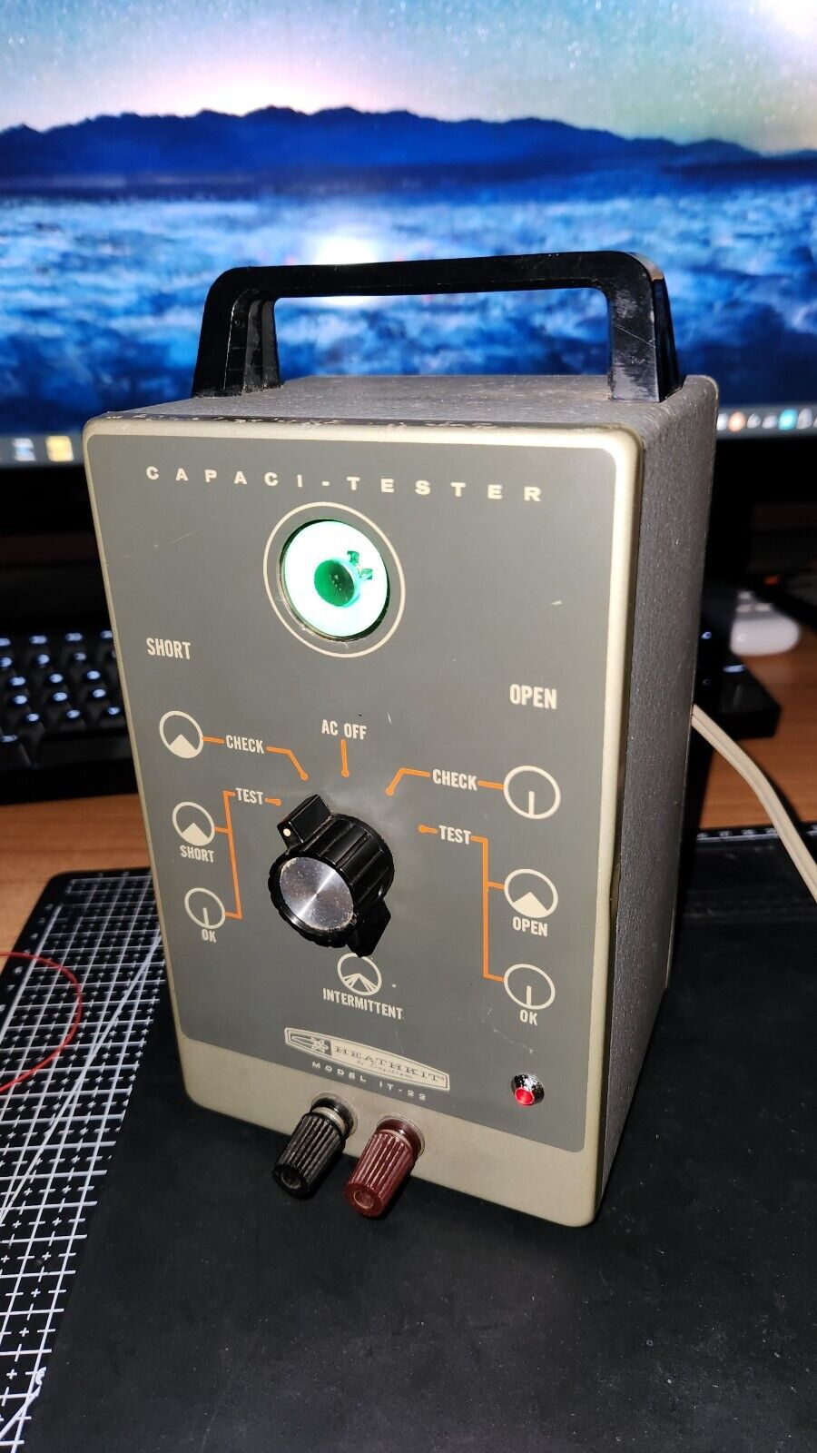 Refurbished Heathkit Capacitor Tester – 220v Model IT-22 is a vintage electronic device designed for testing capacitors.